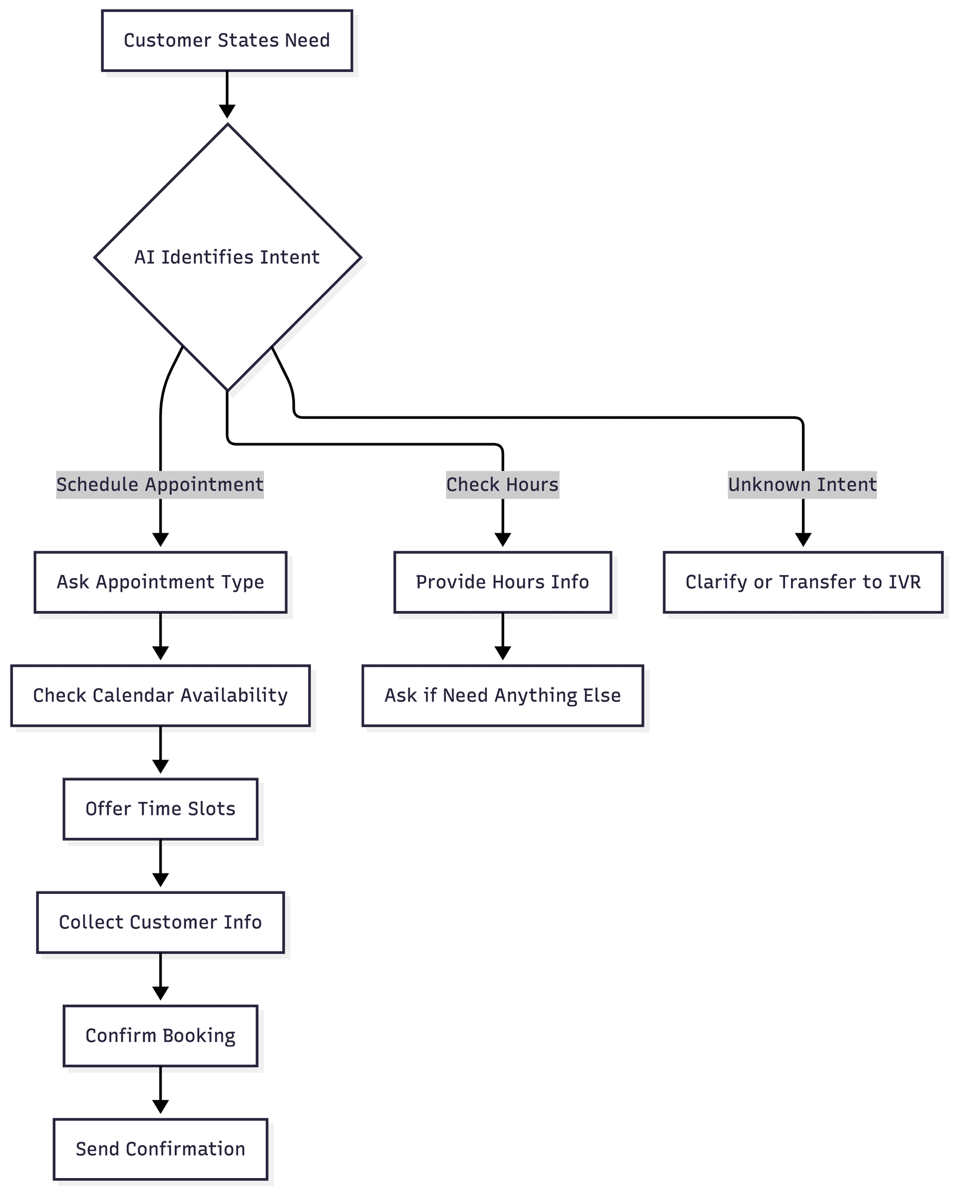 AI: "I can help with that. What type of appointment do you need?"